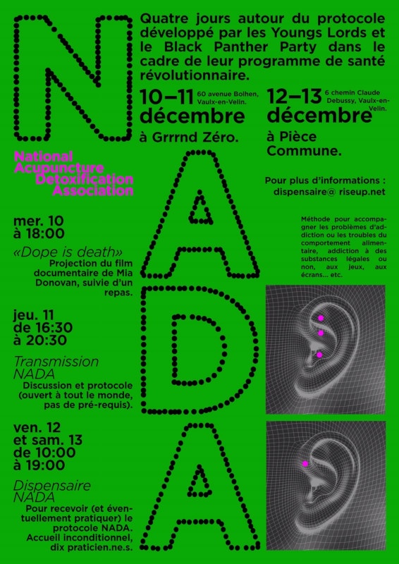 Pour se soutenir dans des galères de conso et des états anxieux, venez apprendre et recevoir le protocole N.A.D.A. (*National Acupuncture Detoxification Association)