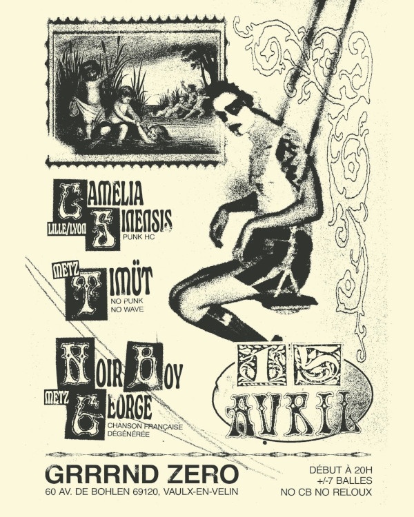 Ruban toutes-étoiles de l’Est, Timüt revient à GZ après avoir été convié à souffler les 20 bougies de cette obscure nébuleuse, et après une première invitation qui nous avait tous laissés bien enthousiastes par Princesse Parking & Chevalier Hangar (tiens, ça me dit quelque chose). Timüt joue une no wave bien punk, empreinte de punk entêtante, réjouissante, électrisante, et tout autant de qualificatifs qui nous font sauter sur place.