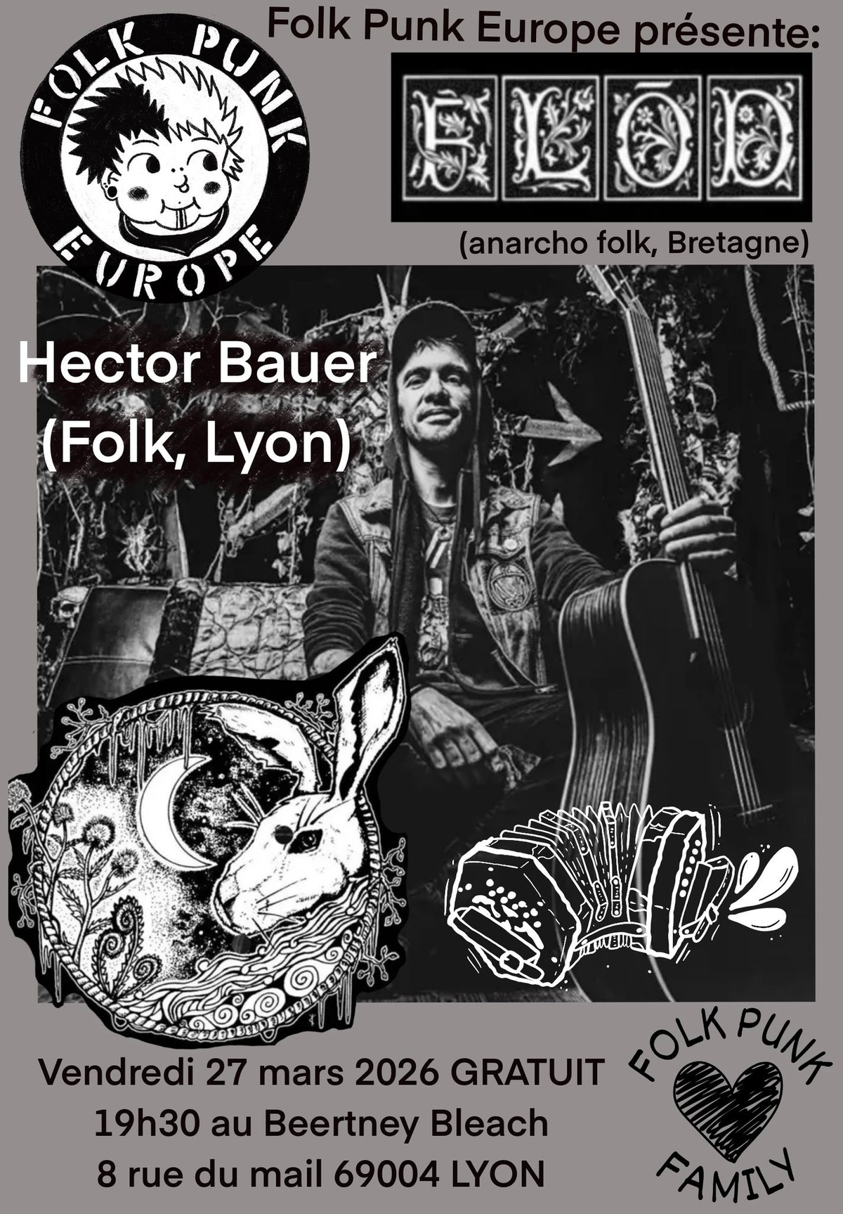Flod (anarcho folk, Bretagne) + Hector Bauer (Folk, Lyon) FOLK PUNK EUROPE SHOW