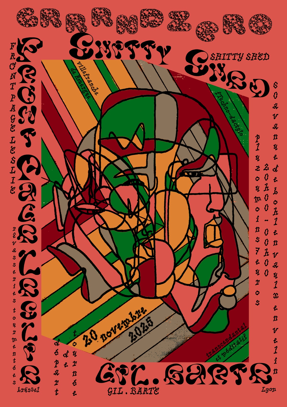 "Front Page Leslie est un musicien multidisciplinaire basé à Bruxelles. Batteur depuis son plus jeune âge, pianiste à ses heures et geek modulaire, Leslie est habité par le punk, le jazz, les dessins animés grunge et la rave. Sa musique est la bande-son parfaite d'une errance alcoolisée dans la ville, d'une déambulation d'adolescent rentrant chez ses parents après une soirée sordide et psychédélique. Il a collaboré avec plusieurs groupes, dont Magic Max et J3M3I (dont il est le fondateur). Son projet solo Front Page Leslie a été lancé cette année. Son premier album, Feelings, est sortie en vinyle chez Jelodanti Records à Paris et en K7 chez le label U-Bac à Leipzig.