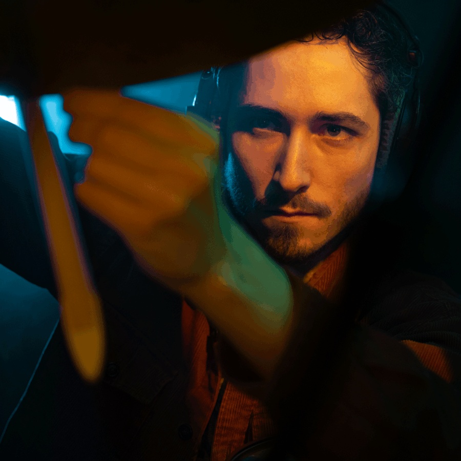 [Kyara Sonor] est un projet musical et sonore, immersif et électroacoustique. Équipé d’une batterie, de percussions, d’un archet, de micros, et de modules d’effets, Matheo Ciesla nous emporte dans un espace-temps suspendu, onirique et cinématographique. La batterie nous mène là où elle n’est habituellement pas attendue au travers d’une mise en espace immersive à 360° créé par Anthony Dupuy. Le cœur du concept réside dans l’utilisation de la technique dite « du microscope » qui consiste à rapprocher (voire coller) le micro au maximum de la source sonore pour entendre ce qui n’est habituellement pas perceptible à l’oreille.