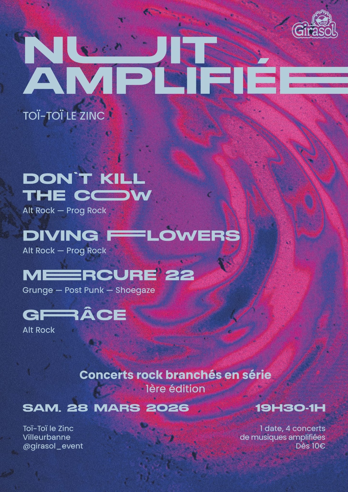 Nuit Amplifiée ouvre une soirée dédiée à la scène émergente rock. Quatre groupes s’enchaînent à partir de 20h sur la scène du Toï Toï le Zinc, amplis allumés !!!
