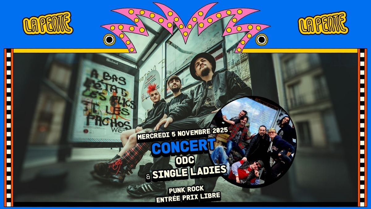 Entre ODC et les Single Ladies, c'est un loooooongue histoire d'amour qui aurait débutée dès avril 2020 si ça n'avait pas confiné à l'époque. Elle a finalement commencé en 2023, avec en point d'orgue une tournée française de 6 dates en soutien des squats au printemps 2024 qui avait démarrée au Farmer (maintenant La Pente). Ce soir à la pente, ce sera leur 12ème concert en commun.
